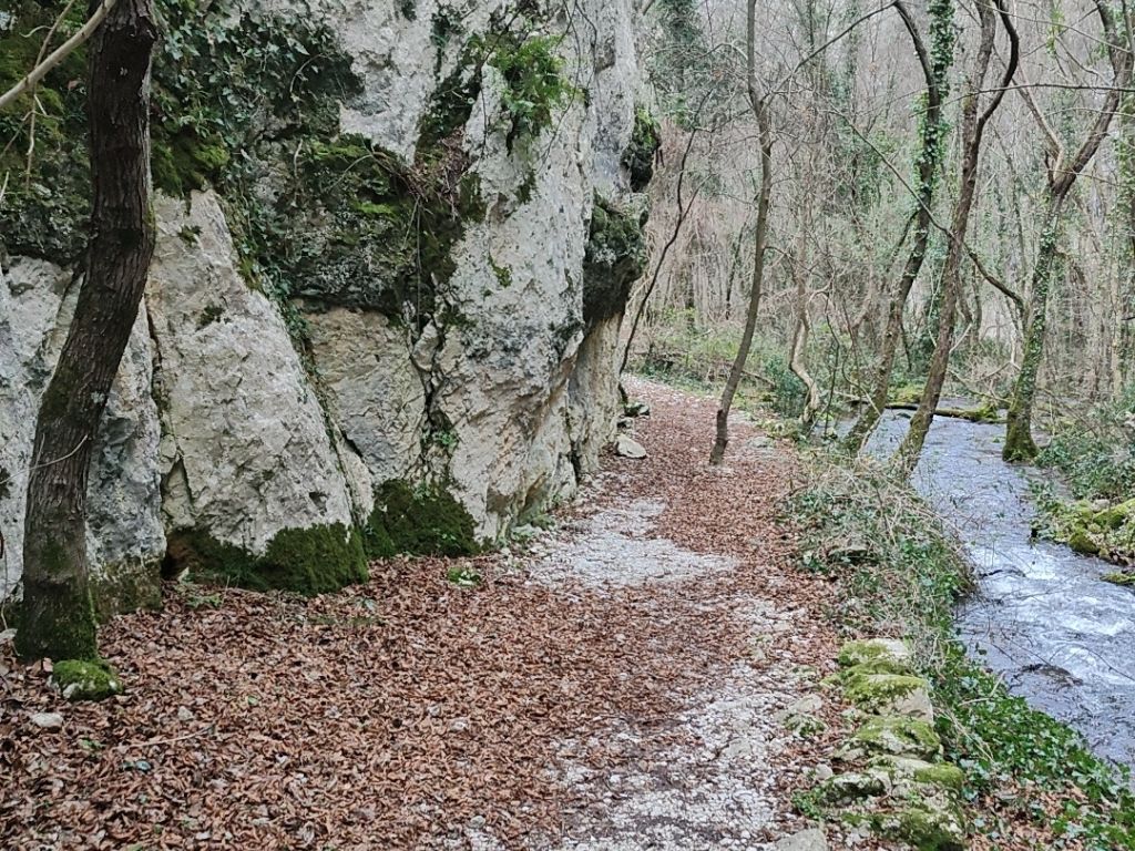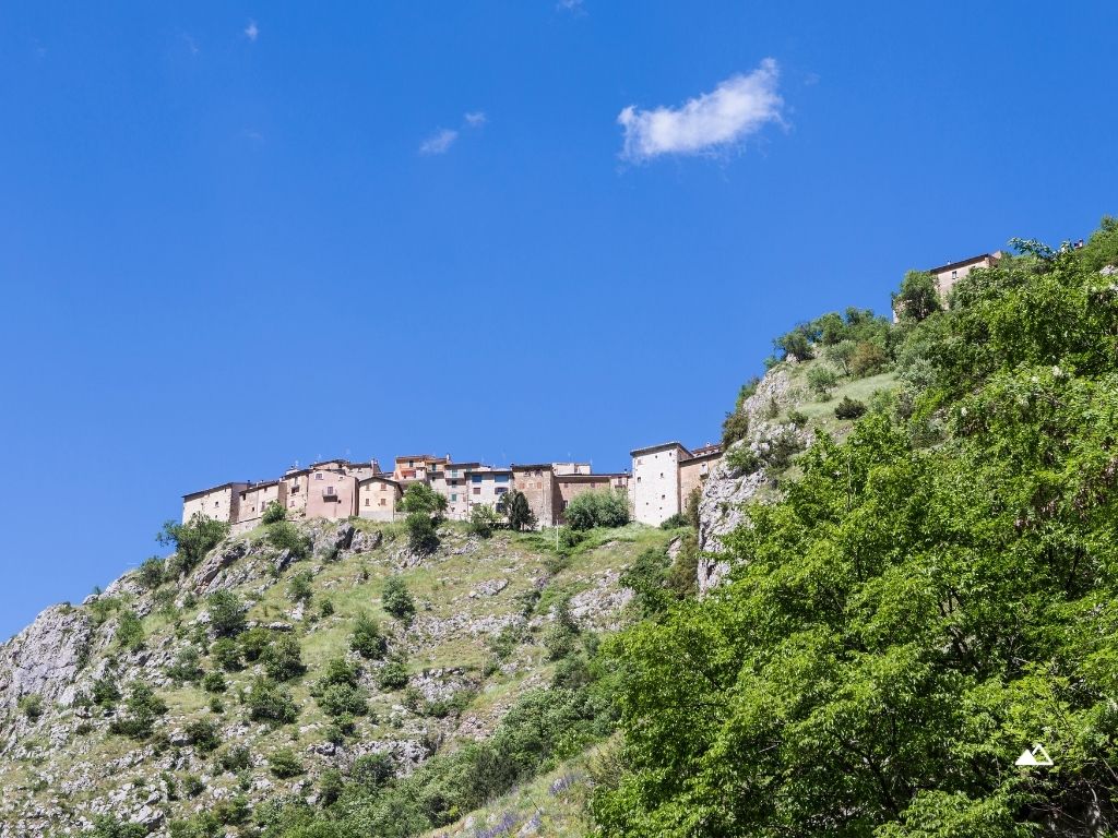 Dopo un breve tratto su strada asfaltata, Il sentiero sale un po’ più ripido attraverso le rocce. Questo è l’unico tratto impegnativo del percorso. In circa 20 minuti si raggiunge Castrovalva.