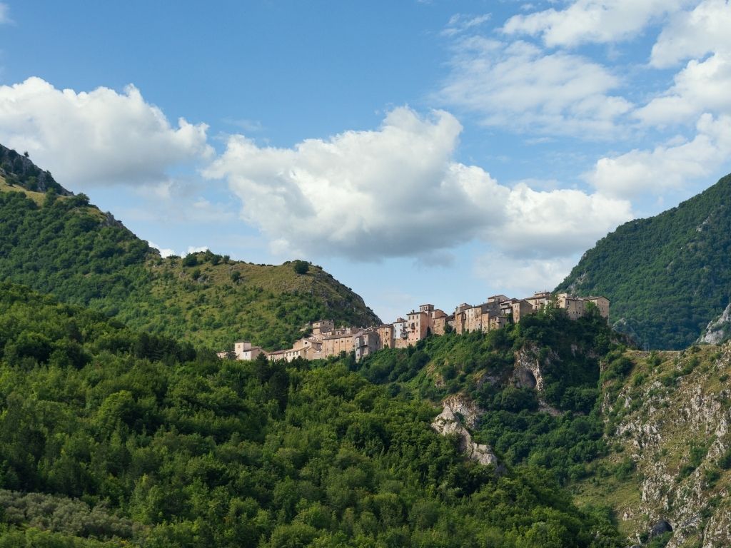 Frazione di Anversa arroccata su uno sperone roccioso a strapiombo, Castrovalva sembra sfidare la gravità: case in pietra aggrappate alla montagna, vicoli strettissimi, un’unica piazza affacciata sul vuoto. Un luogo che non puoi farti sfuggire durante la tua permanenza in questa zona.